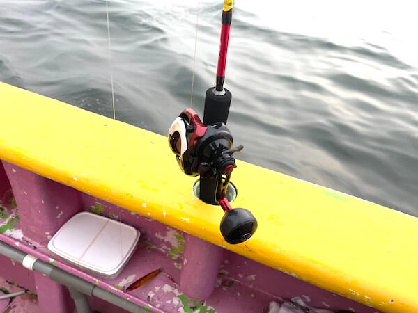 つり幸の東京湾シーバスジギングでは貸し竿もあります。ライトジングロッドと小型ベイトリールのセットが借りれます。