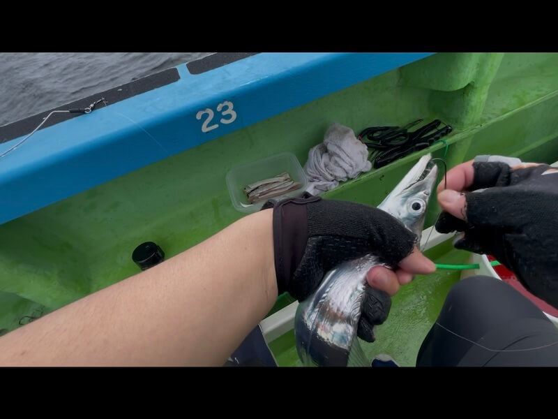 小さいタチウオは食いが雑で、ひったくるようにブルブルと当たりが出ます。
